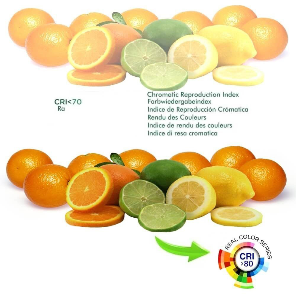 Sus diodos SMD 2835 de Alta Luminosidad OSRAM Chip proporcionada equivalen a la luminosidad de una bombilla convencional de alrededor de 150W. De este modo se consigue un ahorro energético del 80%. La luz expuesta se distribuye en un ángulo de 220º y tiene un índice de reproducción cromática de >80