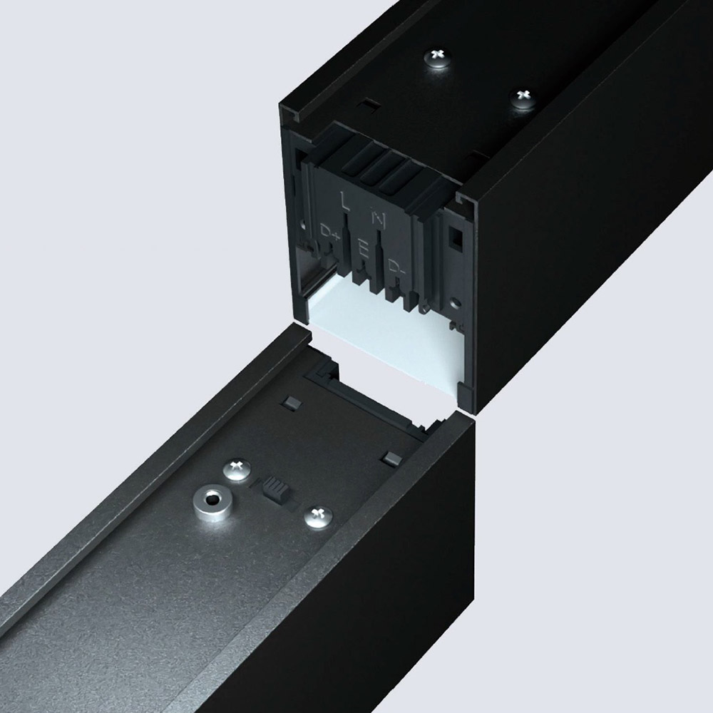 -Efecto Visual Continuo: Gracias a su innovador diseño, los extremos del conector permiten el paso de la luz, creando un efecto visual continuo que añade un toque de elegancia a cualquier entorno. Este flujo de luz ininterrumpido es ideal para aquellos que buscan un acabado estético impecable, donde la luz no solo ilumina, sino que también se convierte en un elemento decorativo que enriquece el espacio.