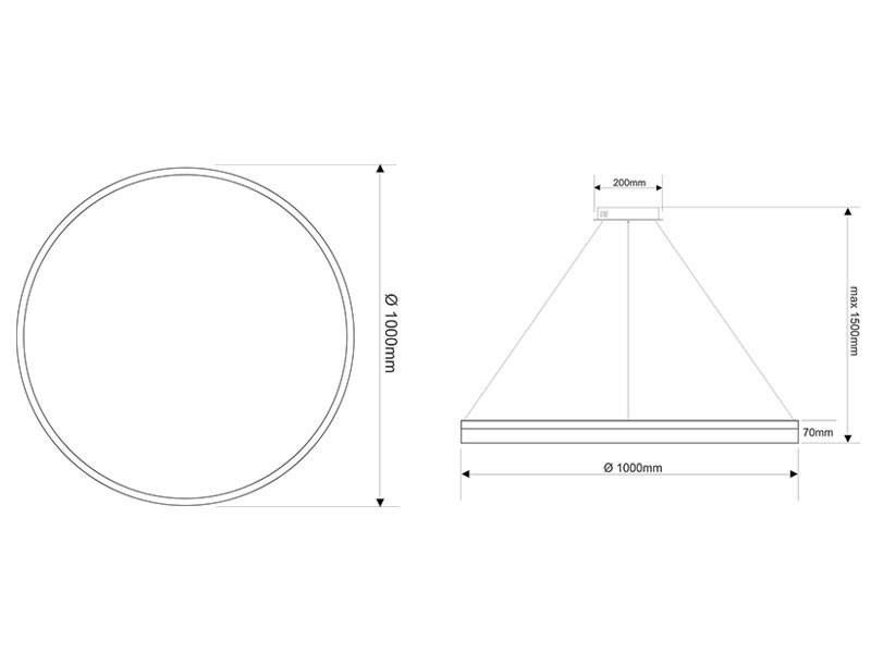 Lámpara colgante RING 73W, negro, Triac regulable, Ø100cm, Blanco neutro, regulable