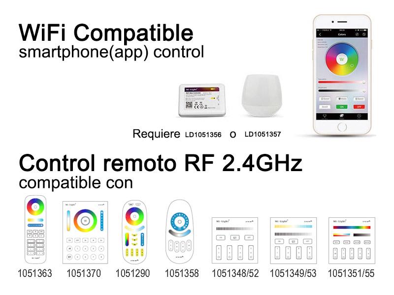 Control Wifi (App para Android o IOs). Requiere controlador LD1051356 o LD1051357.